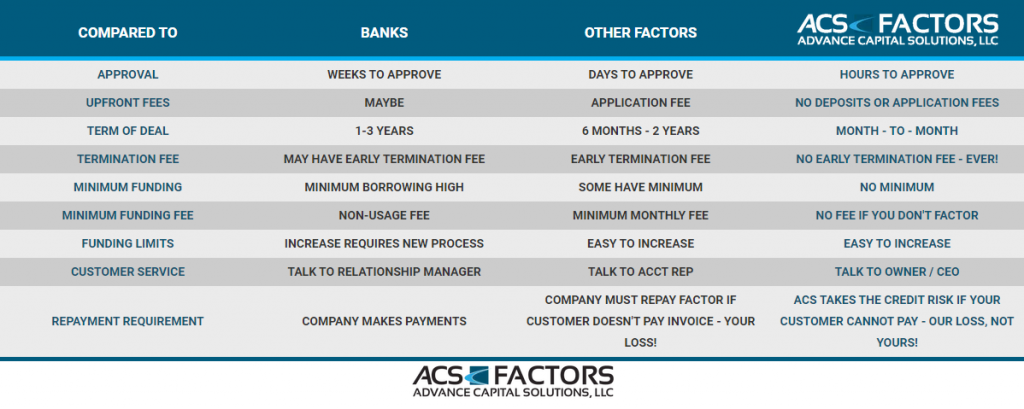 ACS Factors does everything you need to get the job done. Been working with them since day 1. Thank you for all your support!! Awesome! Awesome! Awesome!